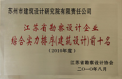 2009-2012年江苏省勘察设计企业综合实力(建筑设计)前十名