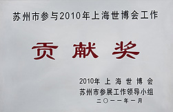 2010年苏州市参与上海世博会工作贡献奖