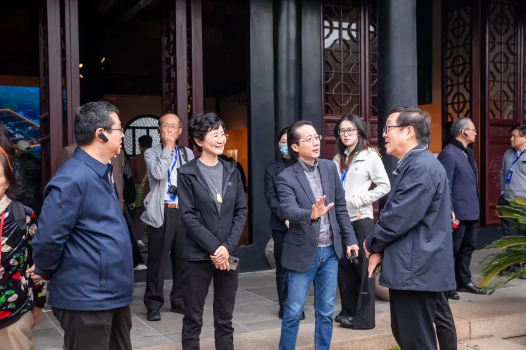 苏州博物馆结构设计师、启迪设计集团荣誉董事长戴雅萍,苏州博物馆机电设计师、启迪设计集团高级总监唐韶华陪同中日韩建筑师参观苏州博物馆
