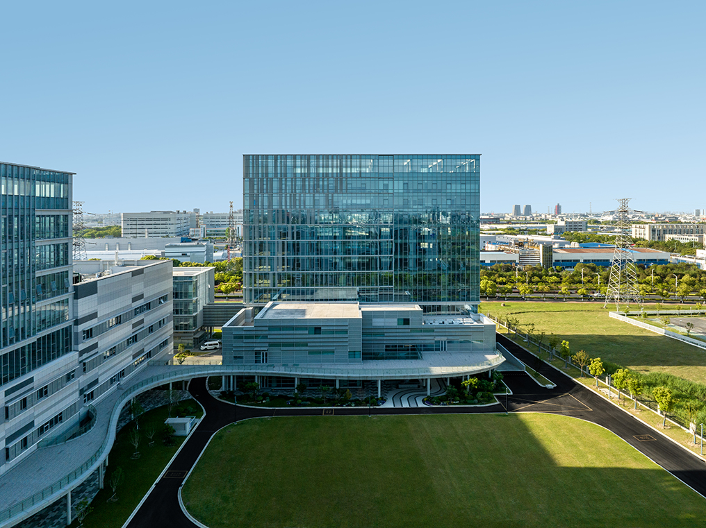 项目为两栋高层的建筑形式,结合生产的需求以及工业建筑参观流线的需求。方案设计以城市界面和肌理作为切入点,严格按照建设项目规划条件及城市设计要求,将塔楼布于地块西南角和东北角,这样为场地东南角预留出一个大的宽敞公共广场,完美的融入到城市界面中去,更加直接的展示沛嘉医疗的自身的形象。同时,通过外围廊的联系,使两座高层形成一个整体。各栋建筑用弧形的飞桥相联系。景观飞桥将建筑单体结合成统一整体。形成立体的交通景观系统。地面,空中的景观延伸进入室内,展现独具特色的总部园区。